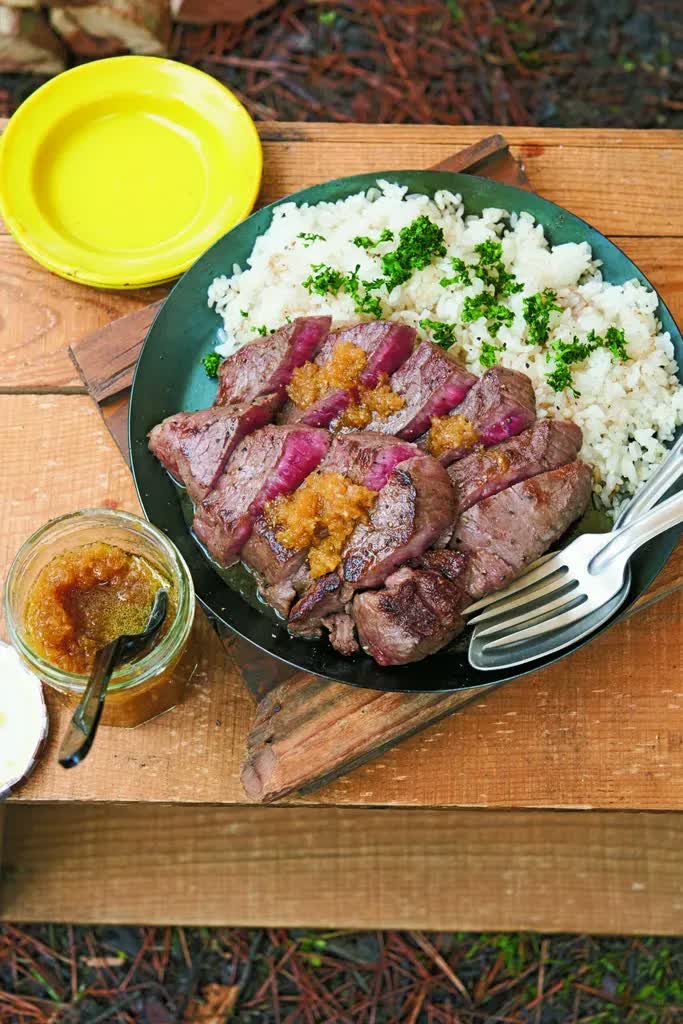 キャンプだけでなく、普段の食事でも使えるタレとして紹介してくれたのが“塩ねぎ油だれ”。「鶏肉にかけてもおいしかったですし、キャベツと和えれば焼肉屋さんで出てくるおつまみにもなりますし、麺に合わせれば塩焼きそばにもなります」とその万能ぶりをアピール。