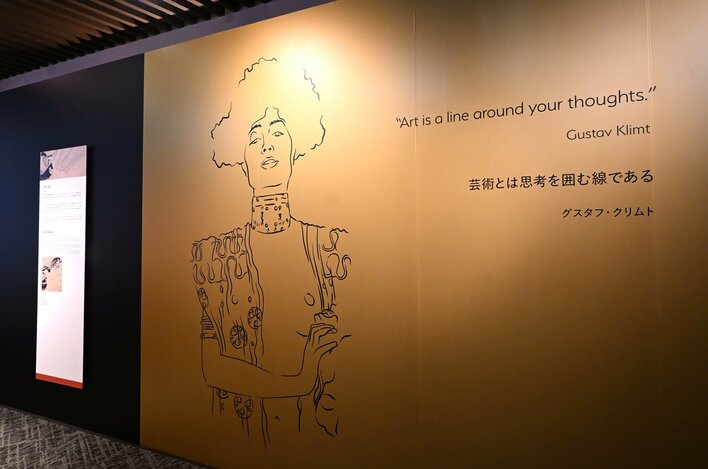 会場までの通路には、クリムトの人生を紹介するパネルも展示。