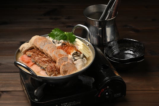 冬の主役である白子の代わりにうなぎを使用。牡蠣・あん肝・サーモン・羅臼いかなどをふんだんに盛り込み、道南農林水産部の定番スープ「北海道味噌出汁」でご提供。まろやかで深みのある味噌の風味が、魚介の旨みを引き立てます。