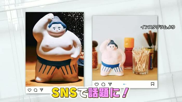 SNSで話題になっているこちらの置物。実は、力士の手の穴から塩が出て、相撲の所作「塩まき」を、食卓で再現できる調味料ケースです。