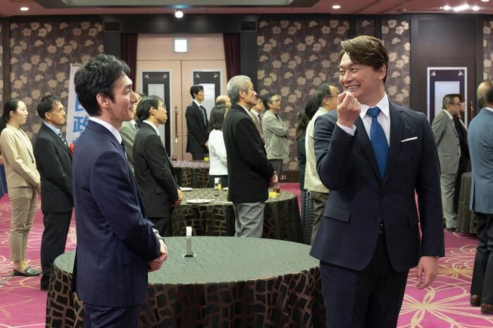 また、一平は区議会議員への当選を目指しており、民政党の衆議院議員・黒岩鉄男(橋本じゅん)の国政報告会に出席。そこで、黒岩の秘書で幼なじみの真壁考次郎(安田顕)から、議員秘書の鷲津亨(草彅)を紹介されます。