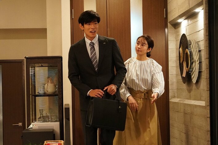 ところがエレベーターに乗ると、婚約指輪を買いに来ていた愛実と川原洋二(中島歩)に遭遇し、4人が密室で顔をあわせる事態に。愛実とカヲルは他人のふりをしますが、明らかに挙動不審です。