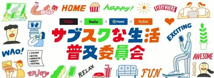 動画配信サービスの「FOD」「Hulu」「Paravi」「TELASA」がコラボレーションした「サブスクな生活普及委員会」が、キャンペーンを実施します。