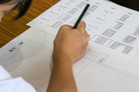 生徒たちは、家族構成や必要な部屋、暮らしのこだわりを自分なりに考えながら、「平屋でゆったり暮らしたい」「料理を楽しめるキッチンがほしい」「趣味を活かせる部屋をつくりたい」といったテーマをもとに、家族とたくさん話し合い、自分だけの間取り図を描くことに挑戦します。