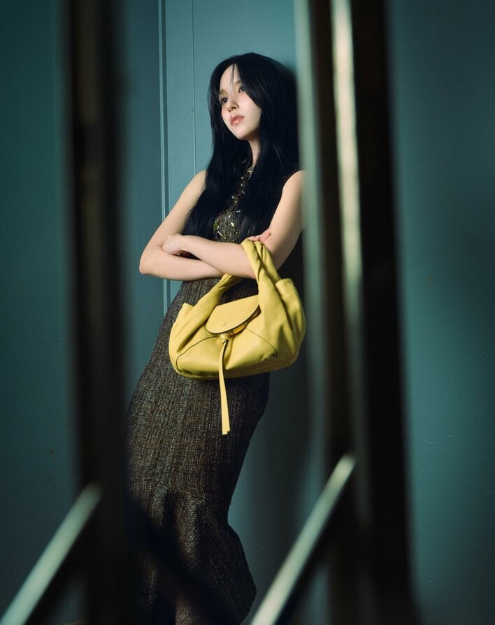 ジャパンブランドアンバサダーを務めるMINAさんは、ソルベイエローの「フェンディ スパイ」を着用。フェンディ2025-26年秋冬コレクションのキーとなるシャーベットカラーがコーディネートにアクセントを添えています。
