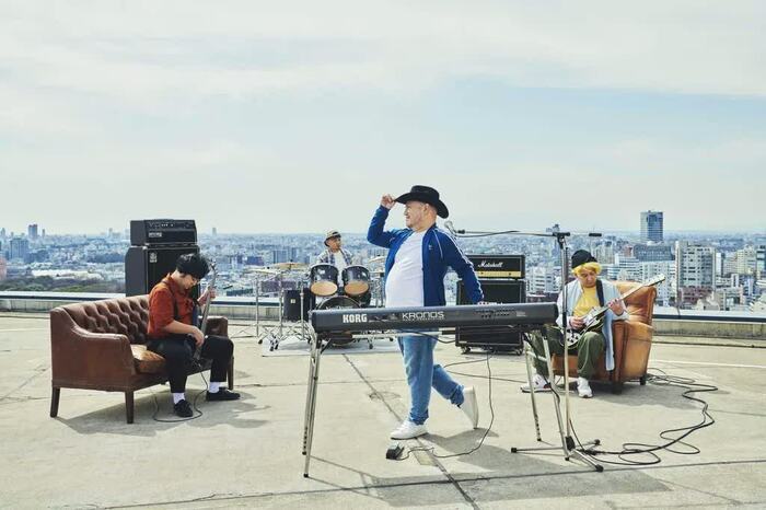 さらに、The DON of Satisfactionのメンバーの歌唱シーンでは、都会の青空のもと、ハリウッドザコシショウが軽快なメロディにのせて力強く歌い上げている。
