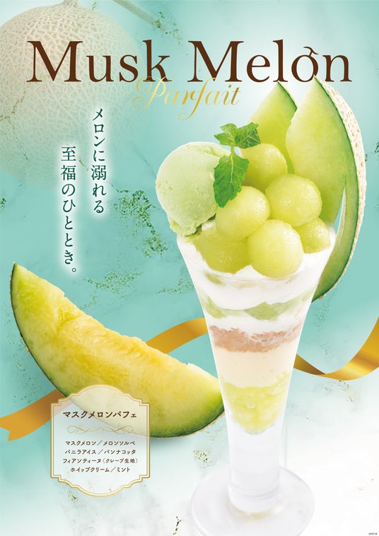 芳醇な香りと濃厚な甘みで多くの人を魅了するマスクメロン。最後のひとくちまで美味しい、この時期だからこそ味わえる特別なパフェをご提供いたします。
