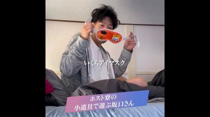 坂口さんは「めっちゃ可愛くない?」と言いながら、アイマスクを目元に当てて楽しんでいます。