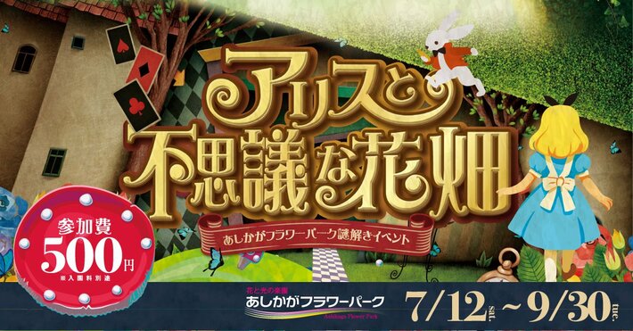 株式会社FeNnec(フェネック)は、株式会社 足利フラワーリゾート(あしかがフラワーパーク)様の夏期メインイベントとして、園内を散策しながら謎を解く「本格リアル謎解きイベント【アリスと不思議な花畑】」を制作いたしました。