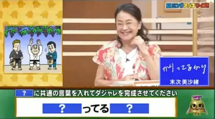 今回の解答者は、タレント・女優の本田理沙さん(50)、歌手のニック・ニューサさん(71)、女優の末次美沙緒さん(67)、ダンサー・振り付け師の真島茂樹さん(?)の4名です。