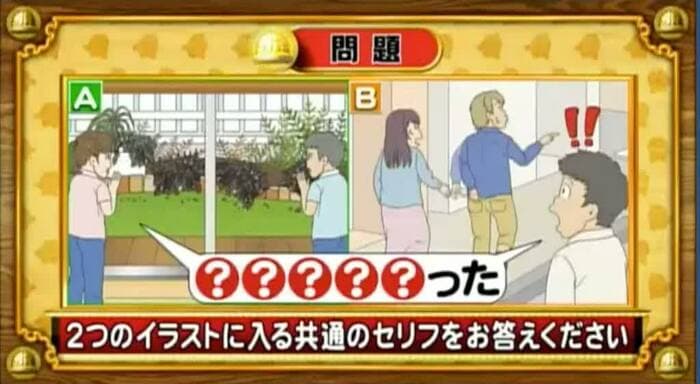 次は、共通セリフ問題。次の2つのイラストに入る共通のセリフを答えてください。