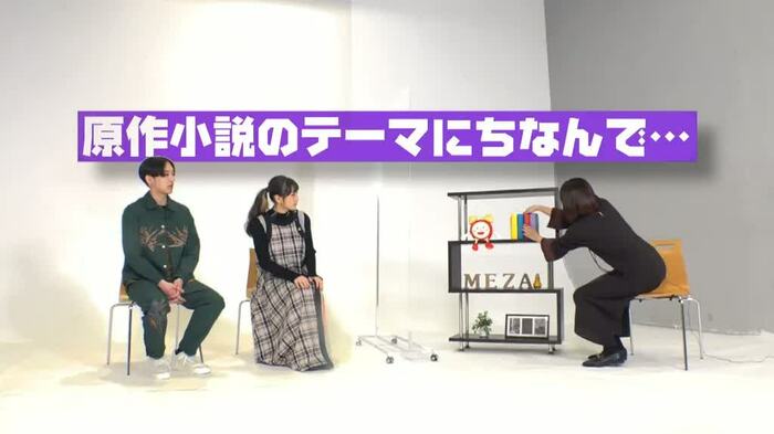 今回「はじめて〇〇したときに読む物語」をテーマにした小説ということで、「YOASOBIのはじめてを教えて!」という企画を行いました。質問が書かれている色とりどりの本から1冊を選んでもらい、その質問にAyaseさんとikuraさんに答えてもらいます。最初に選んだ紫色の本の質問は・・・。