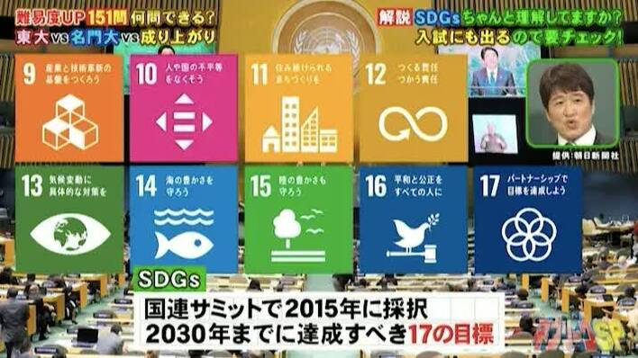 林修先生は、「SDGs」について答える問題で解説を加えてくれました。