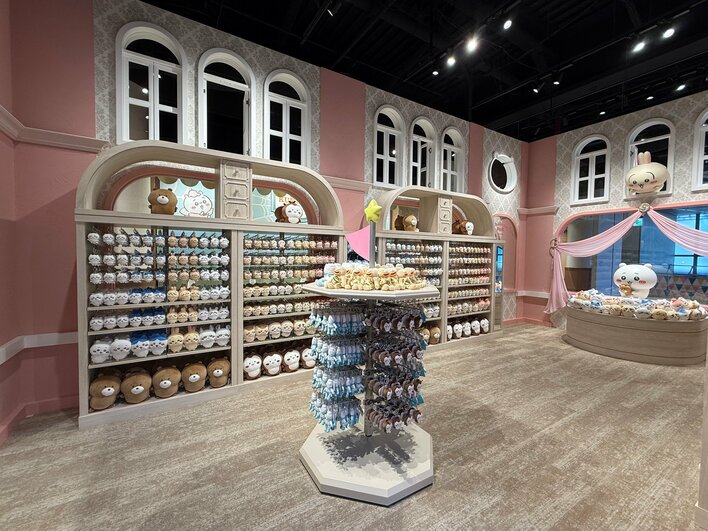 ちいかわの世界に入り込める体験展示エリアに、クリアするとオリジナルグッズがもらえるゲームコーナー。そして、ちいかわパークでしか買えない限定アイテム約200点が並ぶショップエリアなど、魅力的な空間が広がっています。