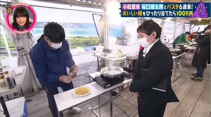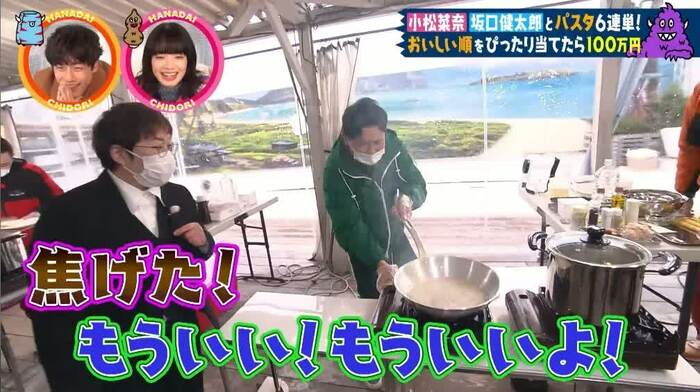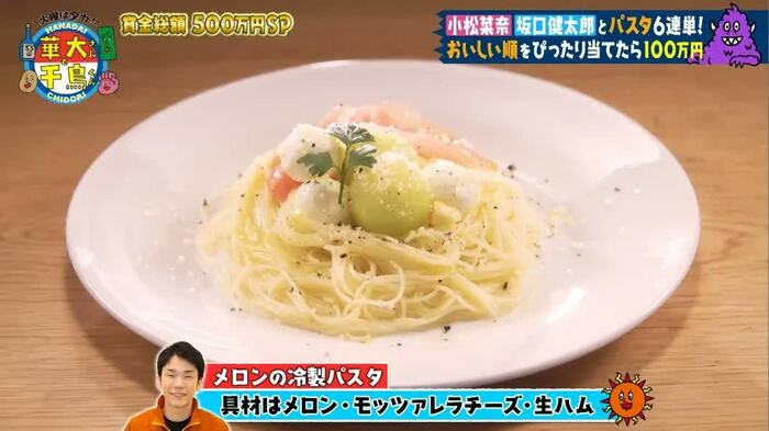 「結婚式で出てきて、残すやつや」「芸人が思いつく!?」「おしゃれ」と茶々が入りながら、見た目にもこだわったパスタが完成。小松さんも「きれい!」と拍手しました。
