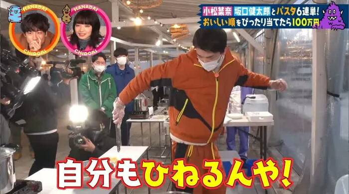 大悟さんの指示に、笑ってしまう小松さんでしたが、素直に従ってパクパク。ノブさんから「もう食べなくていいから!」と言われるまで、食べ続けました。