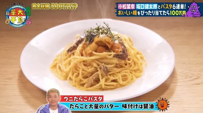 坂口さんは、嶋佐さんのウニをふんだんに使った和風パスタを食べて「うまいっす!濃厚」と驚きました。