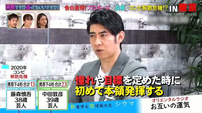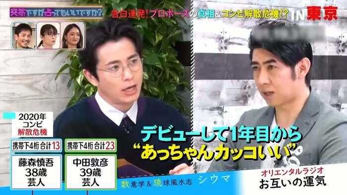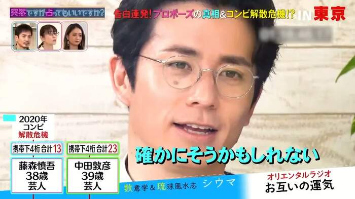 藤森慎吾さん(オリエンタルラジオ)が、シウマさんに占われました。