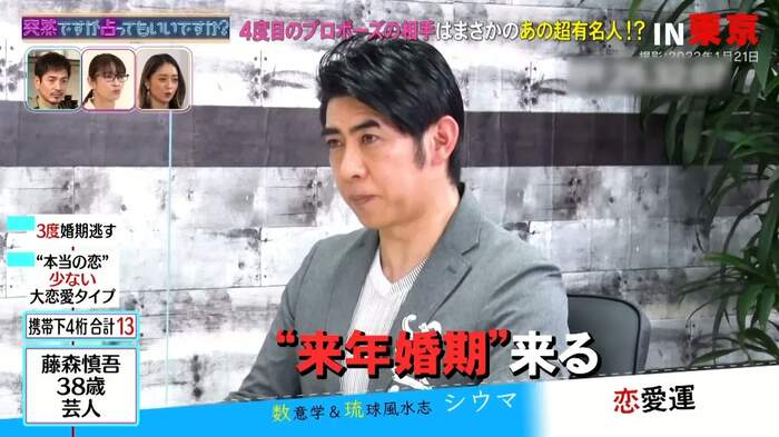 さらに占いは続き、藤森さんの恋愛運も鑑定されました。
