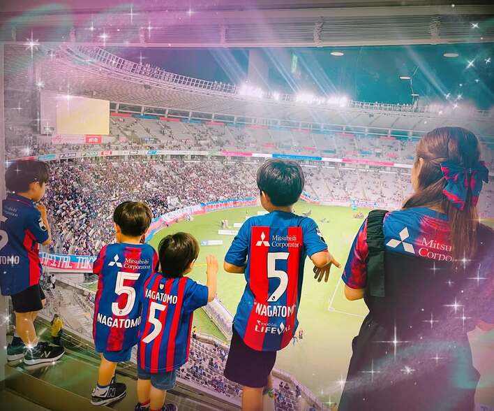 21日の投稿では、味の素スタジアムで行われたFC東京の試合に駆け付けた4兄弟の写真を投稿した平さん。