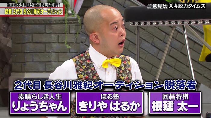 このRoundでは、長谷川さんの「笑いに走りすぎた」「ボケていた」という判定で、りょうちゃん、きりやさん、根建さんが脱落しました。