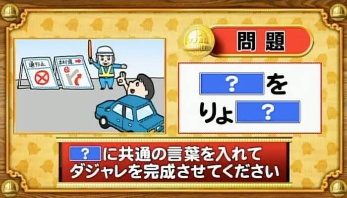 最初は「脳ミングアップクイズ」から、ダジャレ穴埋めの問題。「?」に共通する言葉を入れてダジャレを完成させてください。