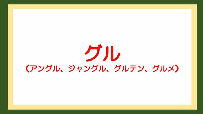 正解は「グル(アングル・ジャングル・グルテン・グルメ)」。
