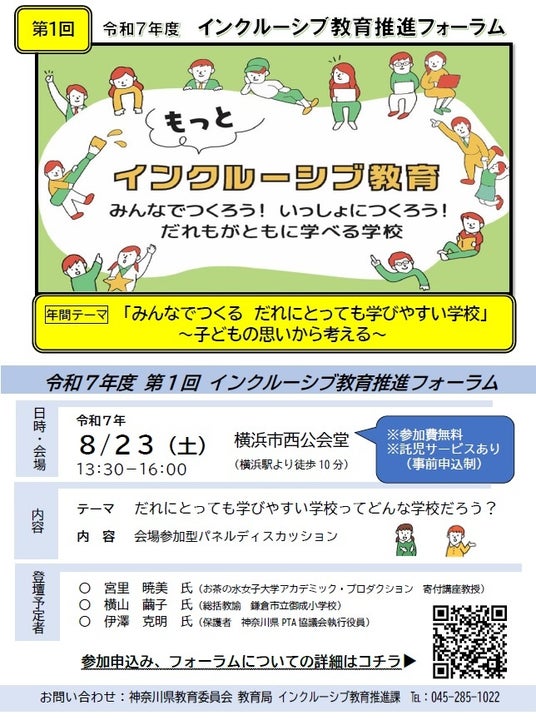 第1回インクルーシブ教育推進フォーラムを8月23日(土曜日)横浜市西公会堂で開催します。