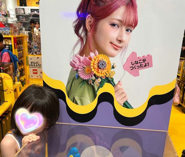 また、「大好きなしなこちゃんのパネルを見つけてテンション爆上がってたり…」と、人気クリエイター・しなこさんのパネルに寄り添った娘さんのショットや…。