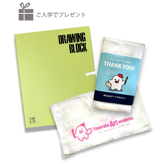 【特 典】入学いただいた方にスケッチブック&やわらかアトリエタオルプレゼント