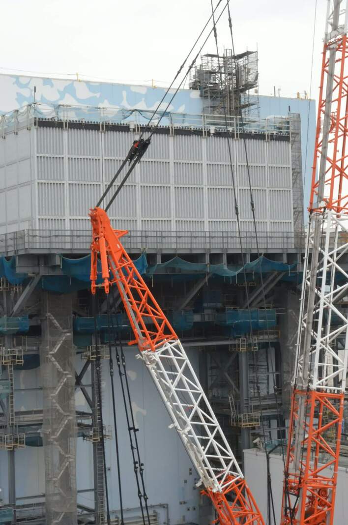 見た目で変化を感じられたのは、まずは1号機。大きな水素爆発を起こした原子炉建屋です。