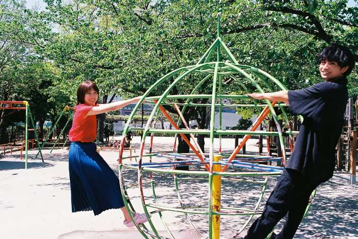 今回、解禁となったオフショットは、中島さんと松本さんが公園の遊具につかまり、カメラに視線を向けるカットや、松本さんが陽光の中で、笑顔や優しい瞳でカメラを見据える、自然な表情が切り取られた写真となっています。