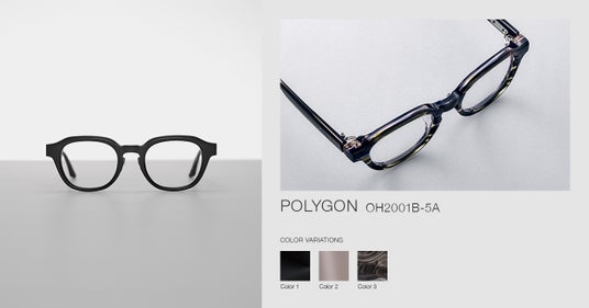 都会的なモード感が漂うポリゴン型と、計算されたバランスが美しいウェリントン型を展開。10mmの厚みを持たせた日本メーカー製の高品質アセテート生地を使用することで、深みのある艶と鮮やかな発色に。バネ丁番を搭載することで、重厚な見た目とは裏腹に快適なかけ心地を実現しました。上質ながらも主張しすぎないデザインに仕上げています。