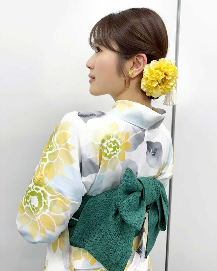 白地に、淡い黄色の花模様があしらわれた、爽やかな浴衣姿を公開しました。
