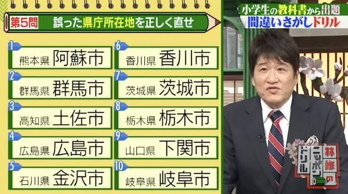 最終問題は、県庁所在地を正しく直す問題。次の10の県の県庁所在地をすべて言うことはできるだろうか?