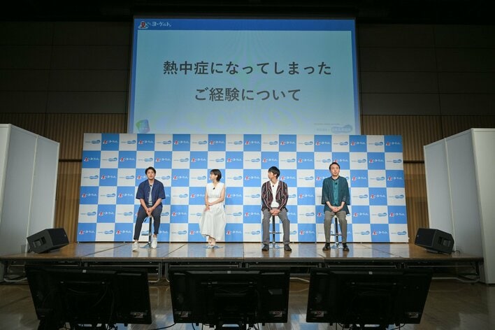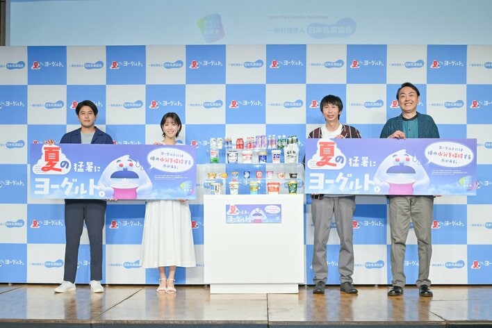 猛暑が続く今年の夏、猛暑対策として「ヨーグルト」をすすめる日本乳業協会のイベントに、アンガールズの田中さん・山根さん、元サッカー日本代表の内田篤人さん、フリーアナウンサーの鷲見玲奈さんが登壇しました。アンガールズの2人はロケ中で熱中症になったエピソードを披露、会場は笑いに包まれました。