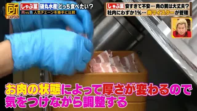 「しゃぶ葉」では、肉マイスターの高い技術力でお肉の品質を管理していました。