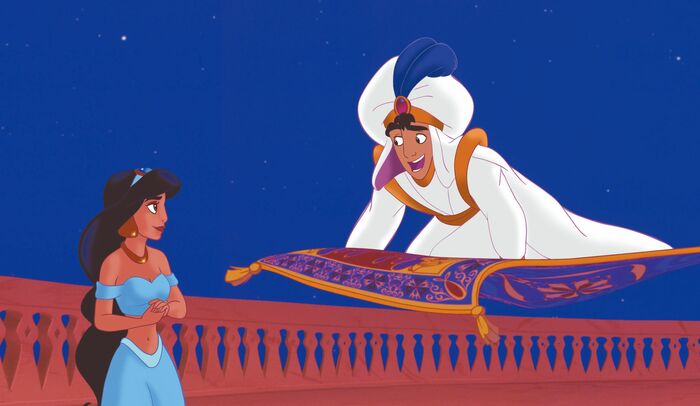 アラジンとジャスミンの恋にナイスアシストする絨毯も(キスのシーン本当に好き)、アブーと絨毯のかわいらしいじゃれあいも、