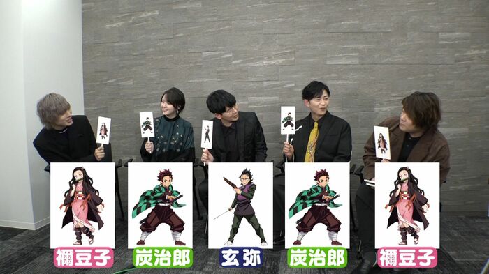 岡本⇒禰󠄀豆子(ねずこ) 鬼頭⇒炭治郎 花江⇒玄弥 下野⇒炭治郎 松岡⇒禰󠄀豆子