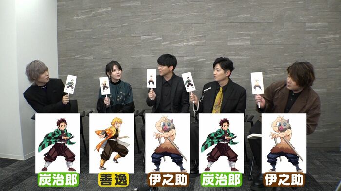 岡本⇒炭治郎 鬼頭⇒善逸 花江⇒伊之助 下野⇒炭治郎 松岡⇒伊之助