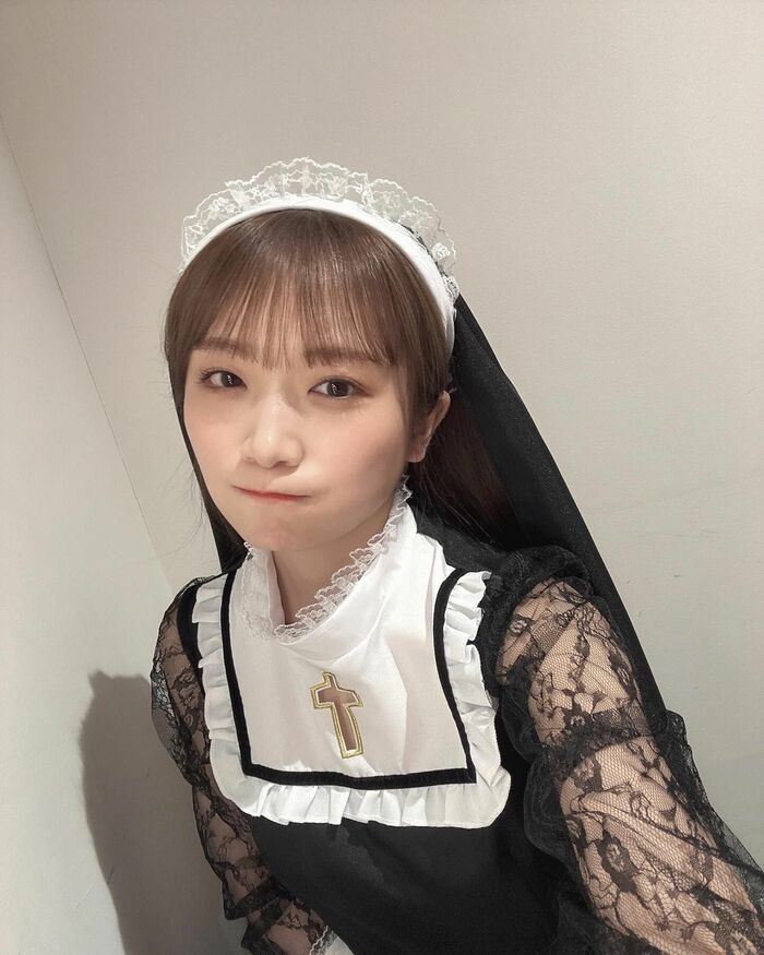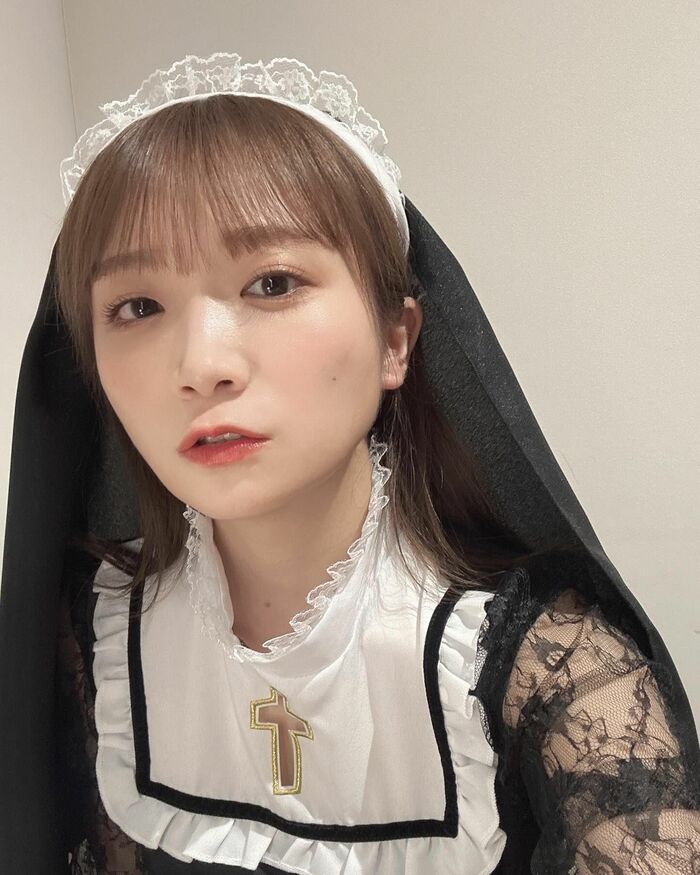 この日は、グッズ撮影の為にシスター衣装を着たという秋元さん。「やっぱりコスプレ好きなので調子に乗って撮った写真あげる。笑」と大好きなコスプレにノリノリの様子。
