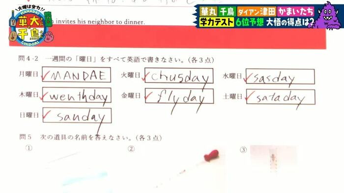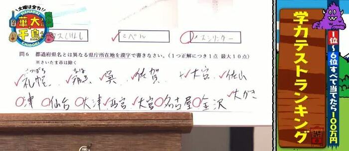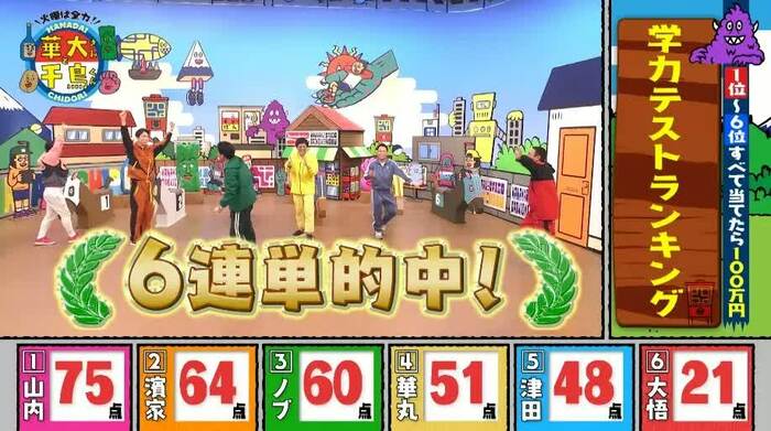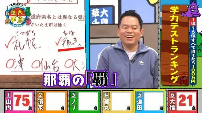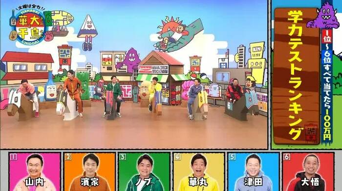 「学力テストランキング」では、華丸さん、大悟さん、ノブさん、津田さん、山内さん、濱家さんが事前に“中学校レベル”の簡単なテストを受けました。