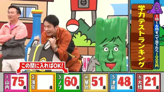 最下位予想の大悟さんは、21点。1位予想の山内さんは、75点でした。5位予想の津田さんの回答は…。