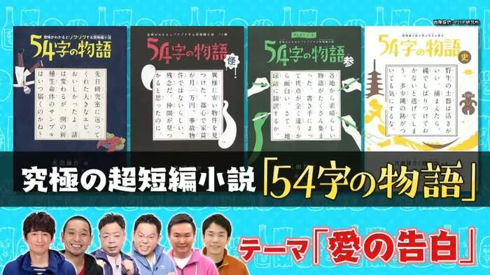 ほかにも「キュンとする54字の恋愛小説を書いたのは誰?ランキング」も放送。“愛の告白”をテーマに、54字だけで完結する究極の短編小説を書き上げました。