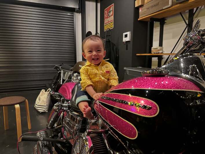 今月1歳になったばかりの長男“ベビバーグ”が人生で初めてのハーレーに乗っている姿を公開し、多くの反響が寄せられました。