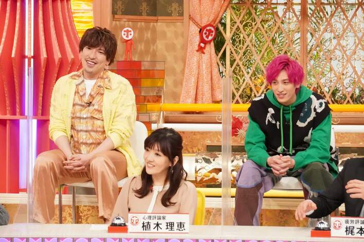 植木理恵(心理)先生が、都会と田舎、それぞれに住む人の服装について、「人は色彩のバランスを取ろうとするので、都会の人はモノトーンな服装、田舎の人はカラフルな服装を好む傾向がある」と説明すると、EXITが反応。