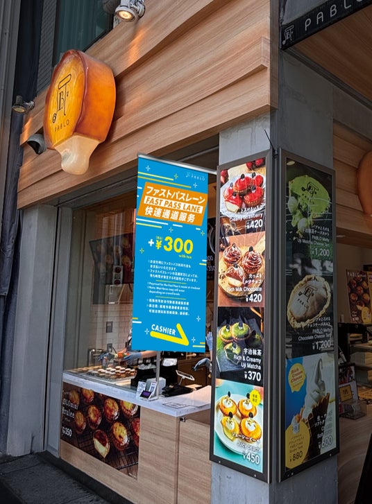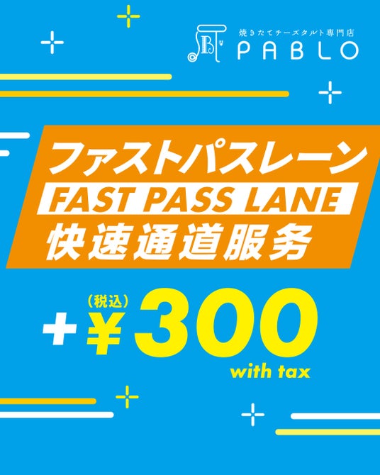 「焼きたてチーズタルト専門店PABLO(パブロ)」では、まるで遊園地のような“ファストパスレーン”制度を開始いたします。観光立地での「並ぶストレス」からあなたを解放します。もう、猛暑の中でお並び頂く必要はありません。