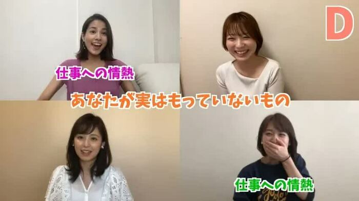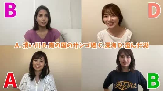 この質問に、久慈アナはA、永島アナと井上アナはB、阿部はDと答えた。