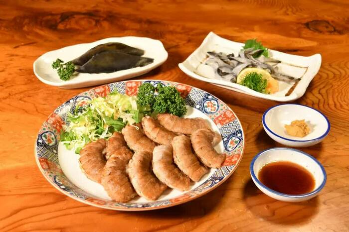 名前の由来は「おいしすぎて犬が死ぬほど食べるから」という説があると説明を受け、松岡さんは恐々とイヌゴロシを口にすると、「コリコリじゃない、グニュグニュっていうのかな。想像以上に味がある、これは珍味でございますね」と食感を楽しんでいる様子。
