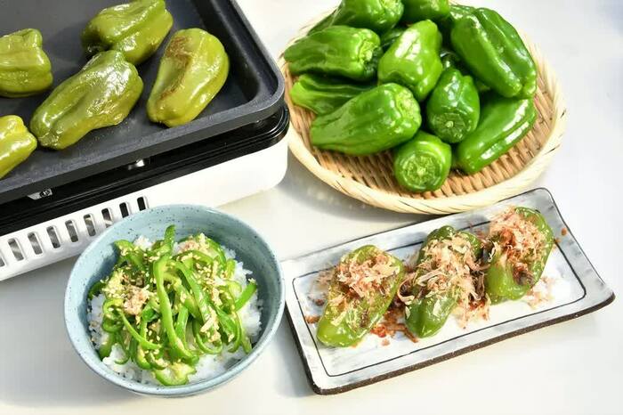 「それをご飯の上にかけて“無限ピーマン丼”にするのが大好きで」と、由章さんからおすすめの食べ方を教えてもらった松岡さんは、早速ご飯と一緒に食べて、「うーん、おいしい。これは子どもが絶対に食べますね」とうなります。
